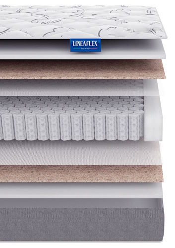 В качестве наполнителей используются коксовая койра (3 см), которая повышает устойчивость к нагрузкам в два раза выше, чем обычные пружинные матрасы и высокоэластичная пена ERGOFLEX, создающая высочайший уровень комфорта. Чехол белого цвета выполнен из жаккарда с добавлением хлопка. Приятен при соприкосновении, легко снимается и прост в уходе.