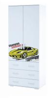 Модель невероятно практичная, включает в себя три выдвижных ящика на роликовых направляющих, а также зону за распашными дверками с полками для одежды и отделением со штангой,