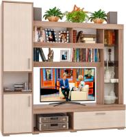 Гостиная «Сити» - база модульного комплекта. Её можно дополнить различными элементами, которые будут уместны как в гостиной, так и в спальне, детской и даже прихожей. Таким образом, вы создаёте уникальный ансамбль, исходя из своих потребностей. Стенка Сити представляет собой синтез классики и современных веяний дизайна. Чёткость линий и функциональность – главные характеристики модели. Центр композиции составляет ниша под телевизор размером 570х1086 мм., ниже – открытая полка для игровой приставки или прочих предметов. Рядом с ней широкий шкаф с откидной дверцей. Большой плюс гостиной Сити – вместительность. Этой задаче служит шкаф с распашными дверцами в левой части модели. На две части его делит открытая ниша. Также гостиная богата полками различной длины. При чём выглядят они необычно, благодаря широким декоративным фасадам. Украшением Сити служит небольшой шкаф с полками за стеклянной дверцей. Эта деталь придаёт модели уникальность, воздушность и утончённость.